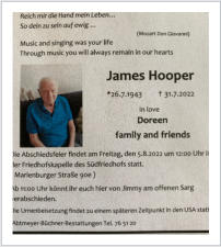 R.I.P lieber Jimmy …Wir sind unfassbar traurig, am 31.7.2022 ist James Hooper von uns gegangen.