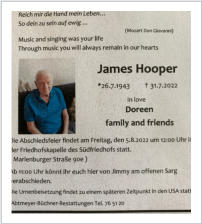 R.I.P lieber Jimmy …Wir sind unfassbar traurig, am 31.7.2022 ist James Hooper von uns gegangen.